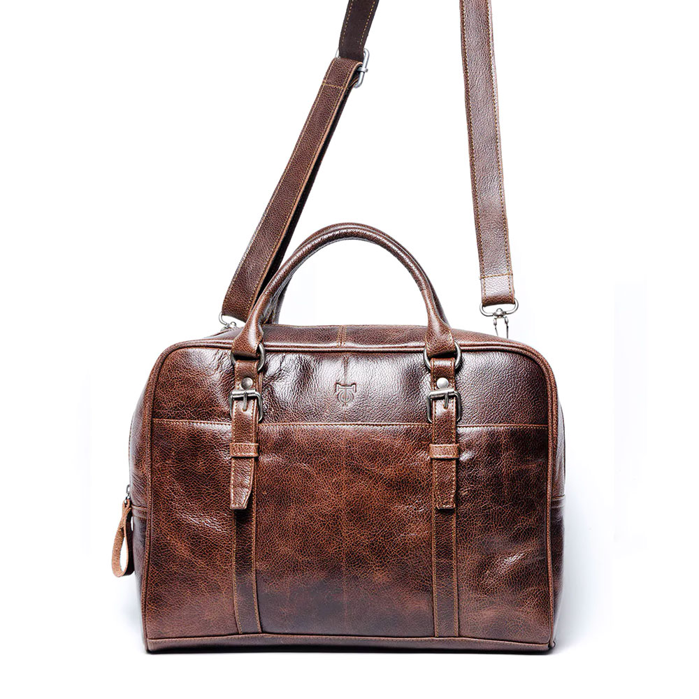 Piel 100% Bovino. Colores negro, café y miel. Forro Poliester/Algodón. Herraje Metálico reforzado y cierre ykk. Piel Grisly.